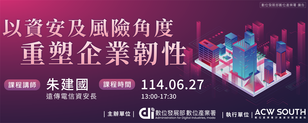 【數位產業署】6/27 以資安及風險角度重塑企業韌性