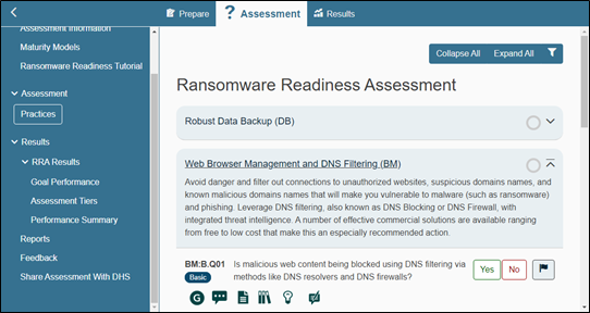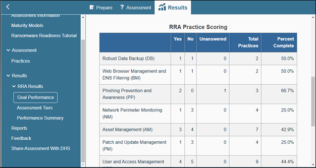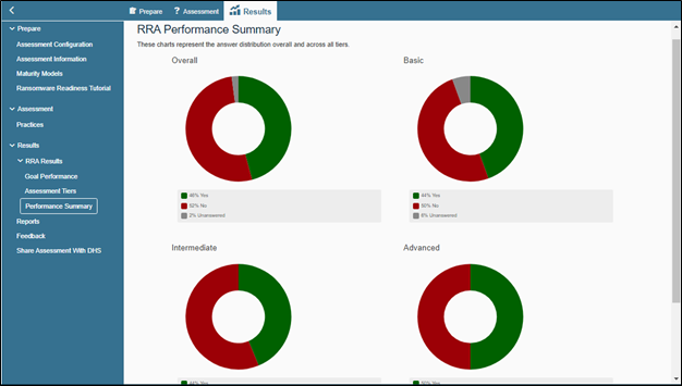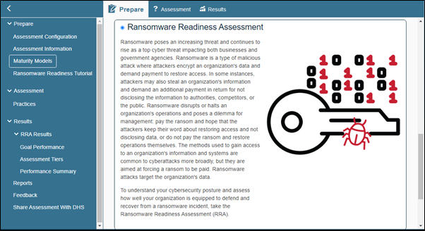 CSET為一評估工具之平台,可協助組織根據不同的成熟度評估模組 (如: ACET、CMMC、EDM、RRA),系統性的評估組織資訊安全性。而RRA則是CSET的新增模組,專門用來評估組織應對勒索軟體時的防禦與恢復能力, RRA亦納入不同等級的勒索軟體威脅防護成熟度,藉以評估組織應對勒索軟體攻擊的狀況。評估結果以透過儀表板的圖形與表格方式呈現評估結果,其中亦包含摘要與細節,提供增強防護之建議。