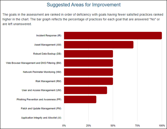 - 建議改善項目(圖12),呈現RRA十大評估項目最低至最高成熟度排名,提供組織檢視優先改善的項目。