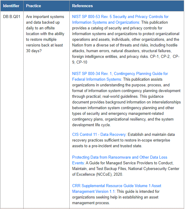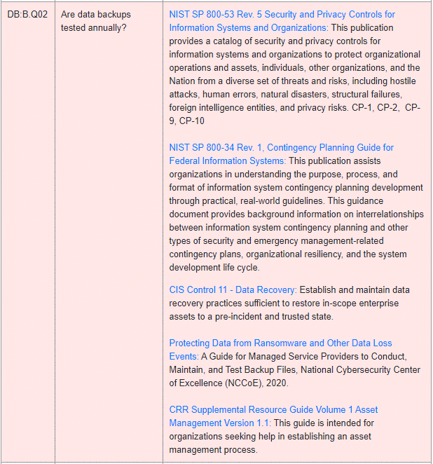 (1)、Robust Data Backup (DB),備份機制:檢視備援政策的適當性,如採用定期與自動化資料與系統設定備份,並以安全方式儲存 (加密)等。