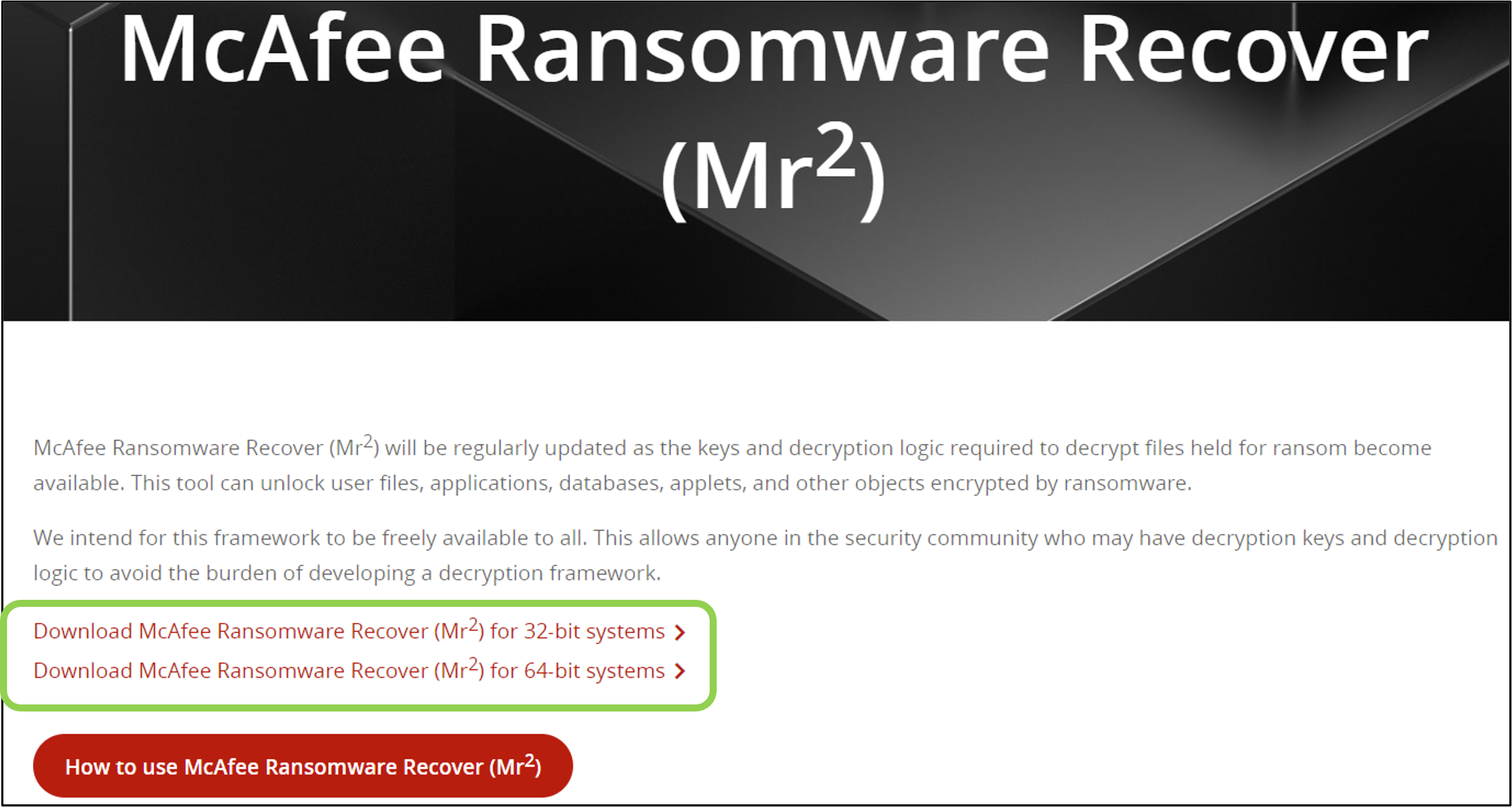圖13、McAfee Ransomware Recover (Mr2) 下載頁面
