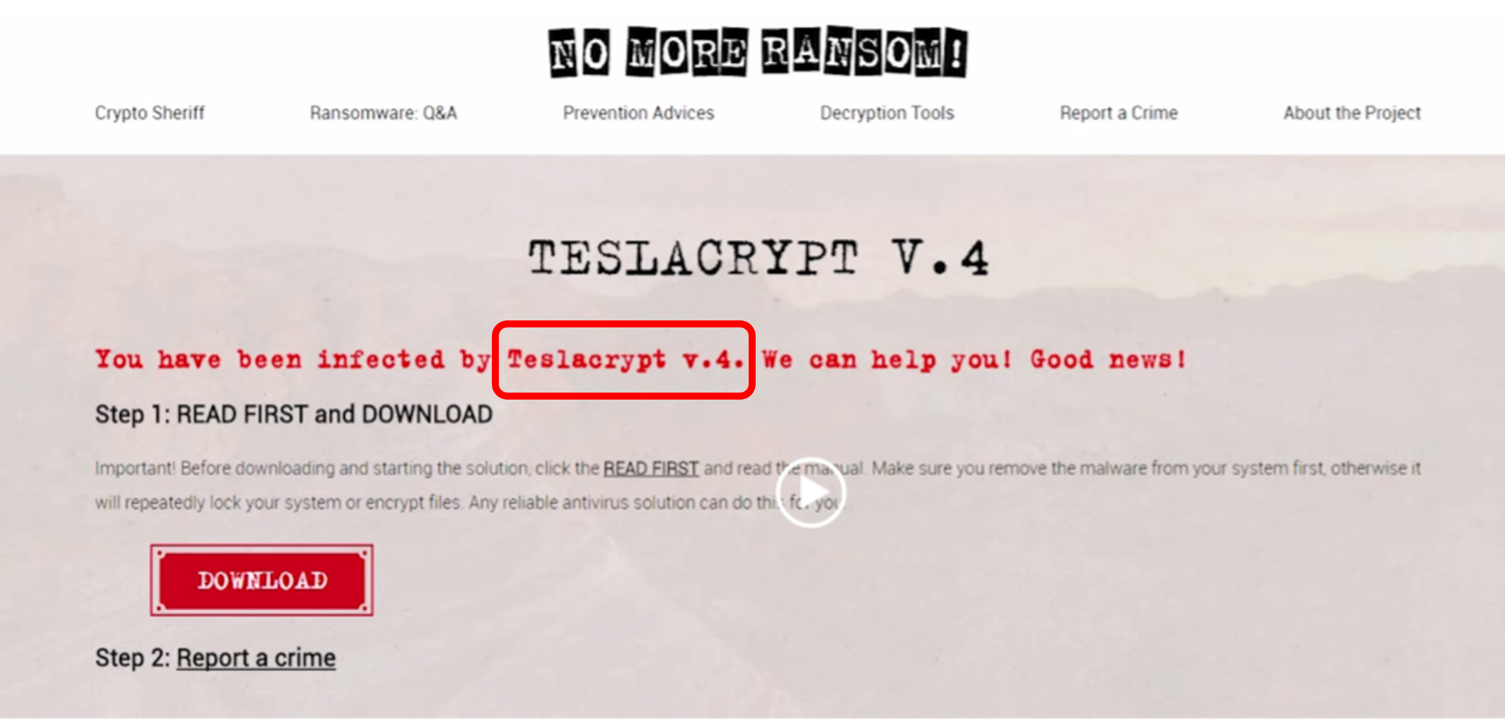 圖7、No More Ransom解鎖工具之說明、使用指南與工具下載連結頁面