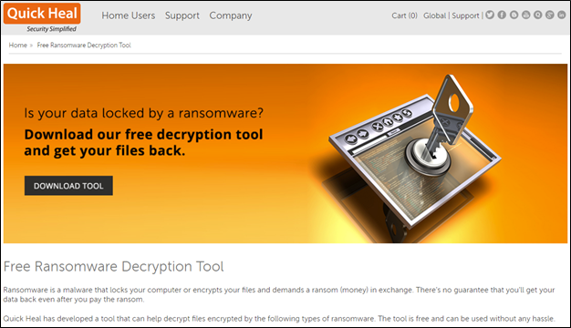 圖22、Quick Heal Free Ransomware Decryption Tool 解密工具下載頁面