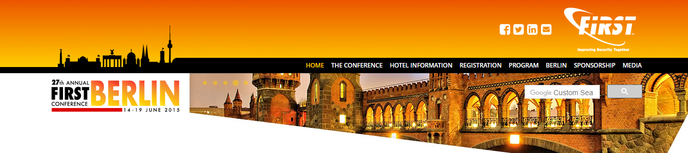第27屆資安事件應變小組論壇(Forum of Incident Response and Security Teams, 簡稱FIRST)年會於2015年6月14日至6月19日間,於德國柏林舉行,是國際最大的非營利資安組織,每年定期會舉行重要的國際資安會議。