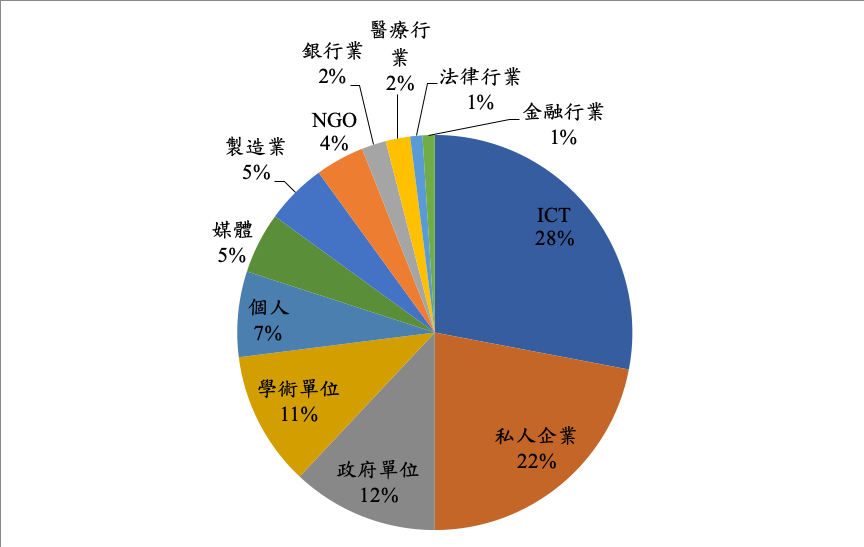 本次參加約251人次,線上直播瀏覽為864人次,統計參與之行業別以資訊與通信科技(ICT)、私人公司、政府單位、學術單位最多;參與之職業角色以經理、工程師、高階經理、一般員工最多,如下圖: