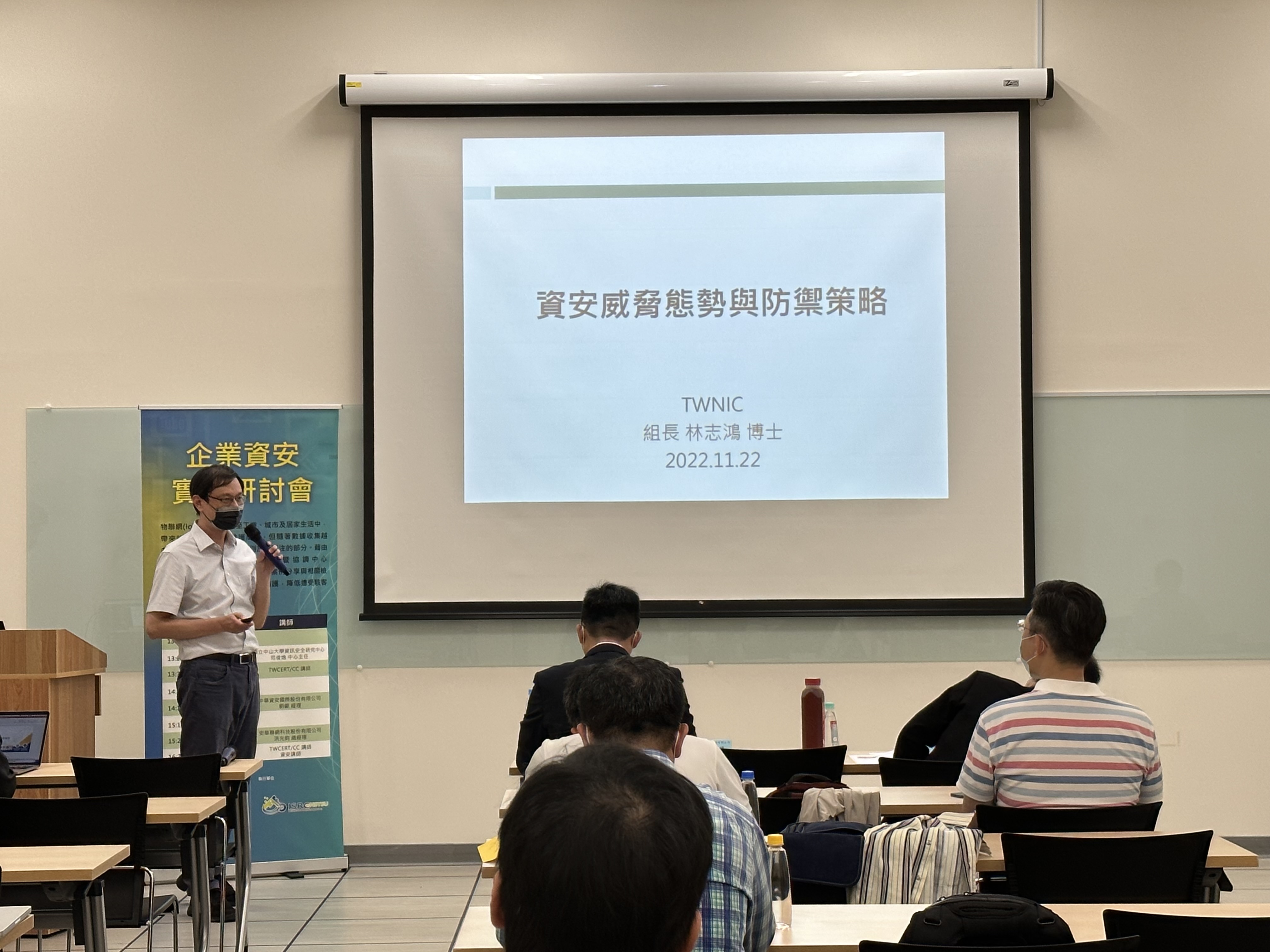 由TWNIC、TWCERT/CC主辦的企業資安實務研討會,11月22日於台南沙崙國科會資安暨智慧科技研發大樓1樓A122第一會議室舉辦。
