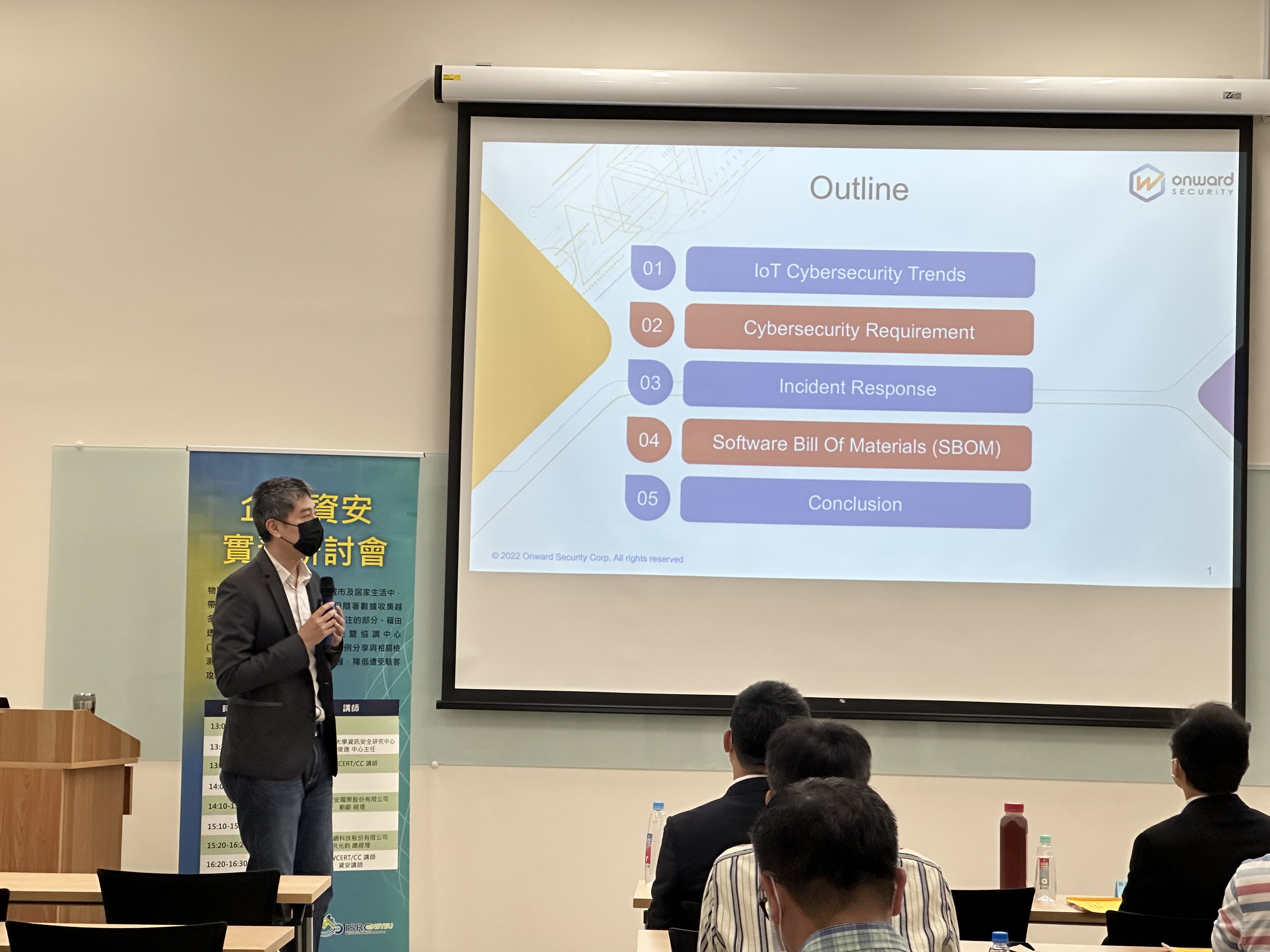 首先,第一場由TWCERT/CC以「TWCERT/CC服務範疇及案例分享」為開場主題,協助南部企業運用TWCERT/CC資源,處理資安危機。第二場由中華資安國際股份有限公司劉叡經理以「IoT物聯網檢測介紹與實務案例分享」為主題進行探討。第三場活動主題「IoT物聯網安全實務分享」,則由安華聯網科技股份有限公司洪光鈞總經理進行介紹與分享。藉由以上議題的討論和分享,提升南部企業物聯網資安意識及強化防禦措施。