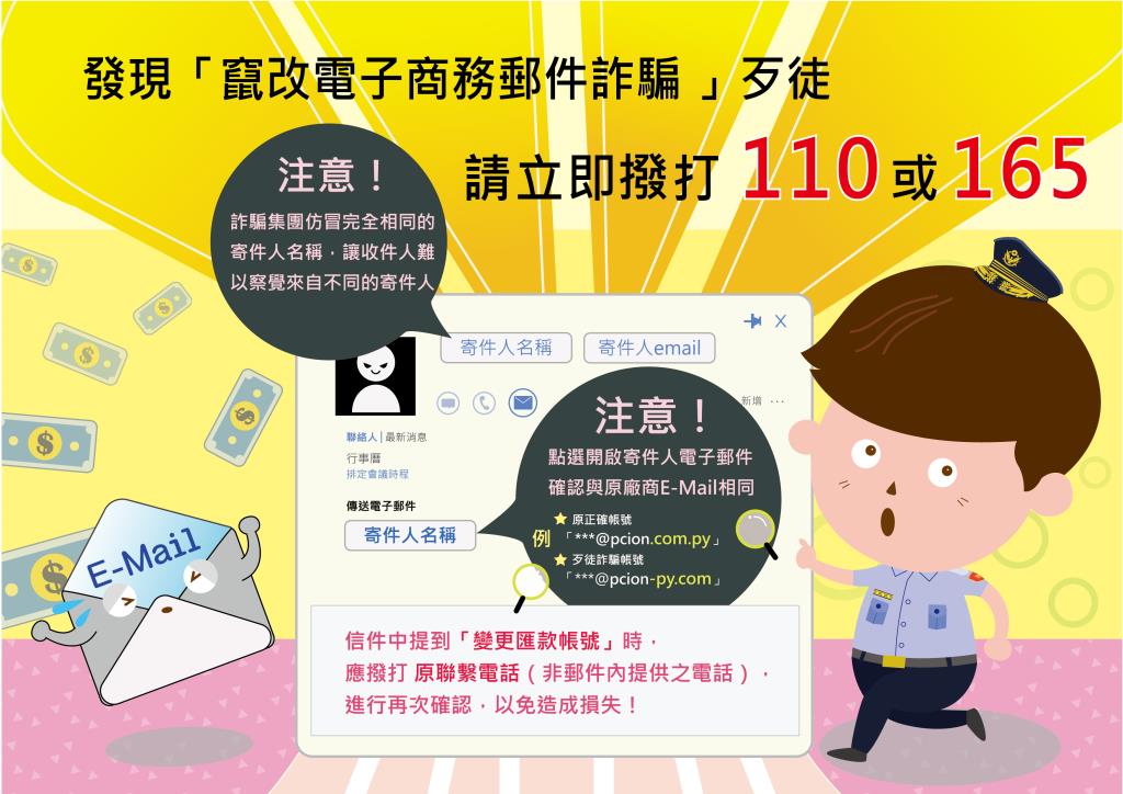 注意E-Mail位址!台北市政府警察局提醒小心遭到商業電子郵件詐騙