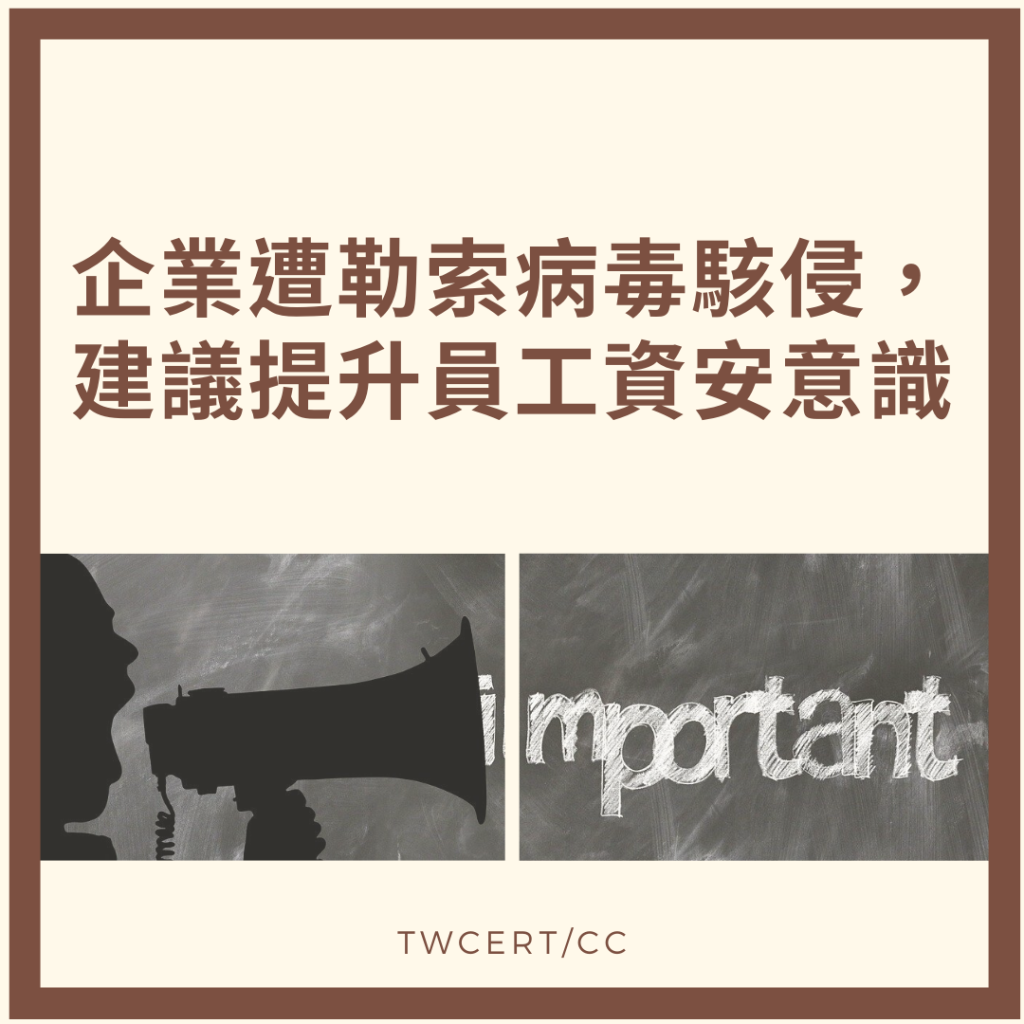 企業遭勒索病毒駭侵,建議提升員工資安意識