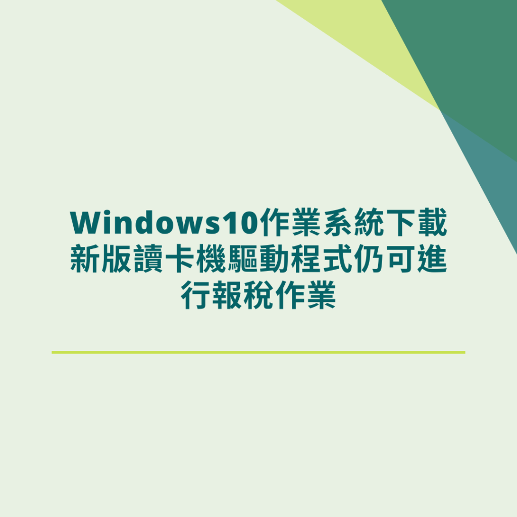 Windows10作業系統 下載新版讀卡機驅動程式仍可進行報稅作業