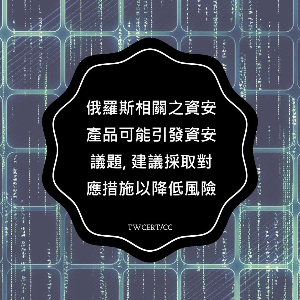 俄羅斯相關之資安產品可能引發資安議題,建議採取對應措施以降低風險