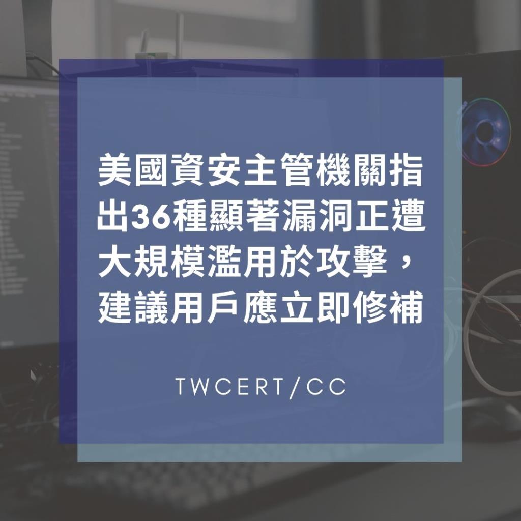 美國資安主管機關指出 36 種顯著漏洞正遭大規模濫用於攻擊,建議用戶應立即修補